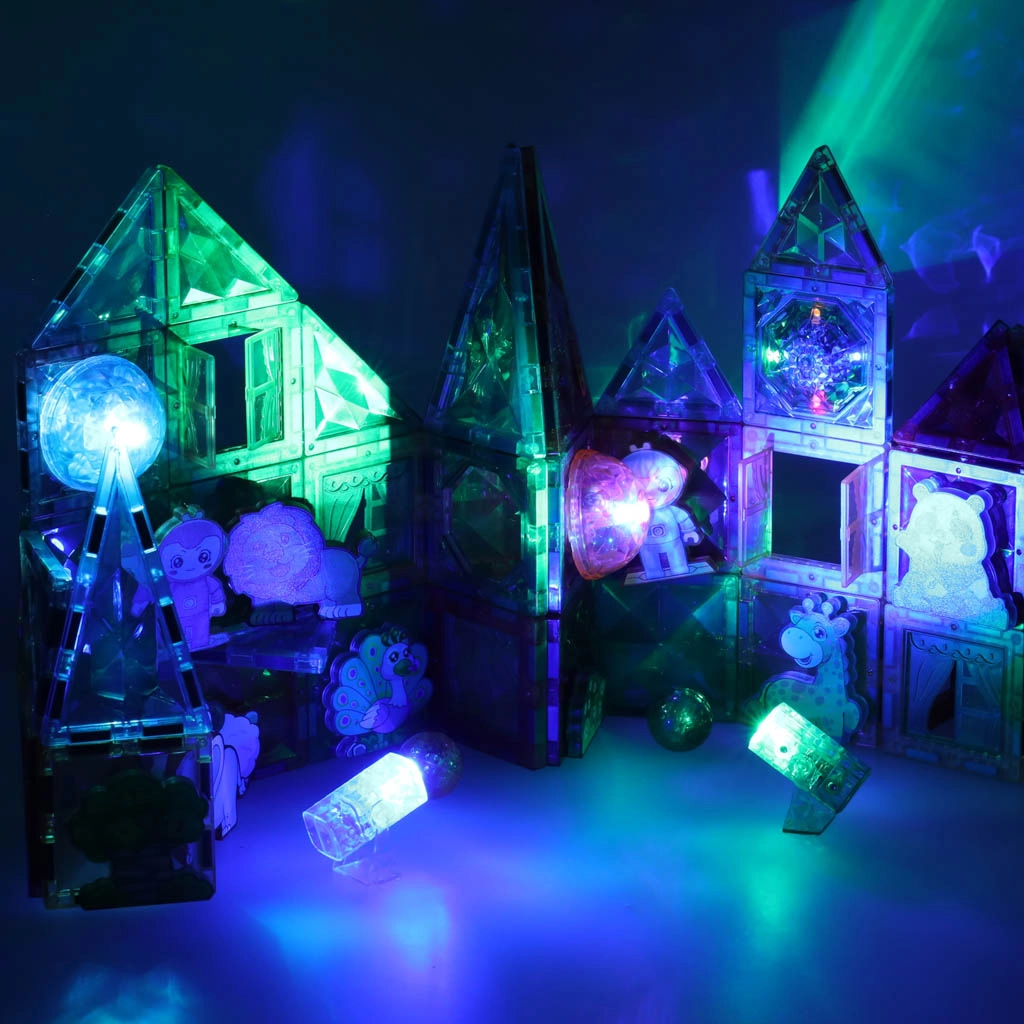 Helendavate magnetkuubikute abil saavad lapsed luua mitmesuguseid struktuure ja ehitisi alates lihtsatest 2D-kujudest, nagu loomad ja numbrid, kuni keerukate 3D-konstruktsioonideni. Kuubikutes on magnetid, mis võimaldavad lihtsat ühendamist ja lahtiühendamist ilma jõudu kasutamata. Mõned kuubikud helendavad, mis muudab ehitised eriti atraktiivseks pimedas.