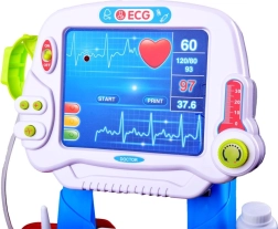 See täielik komplekt väikestele arstidele toob mängu realistlikud elemendid nagu paneel "EEG/monitor" koos valgus- ja heliefektidega, südame lööke matkiva heliga stetoskoop ning termomeeter ja vererõhumõõtja taustvalgustatud tulemusega. Tänu vastupidavale ratastel kärule saab varustust hõlpsalt toas liigutada.