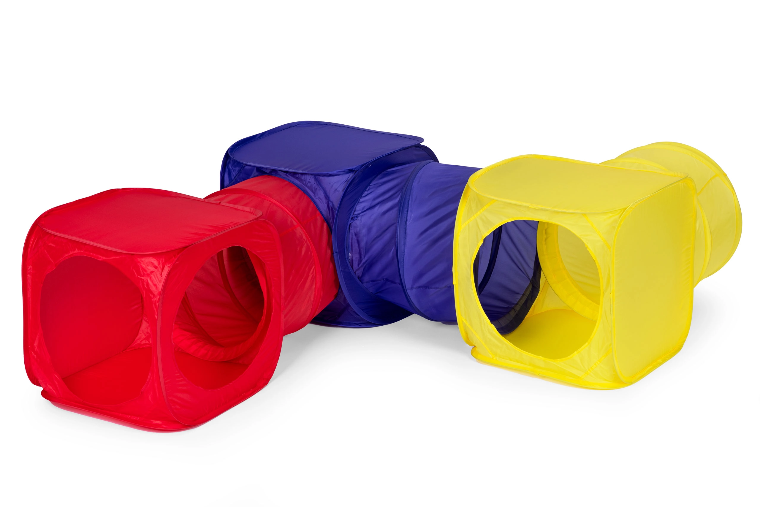 3 tunnelit komplektis võimaldavad telke ühendada ja pakuvad lastele teekonda peidikute vahel. Need on valmistatud vastupidavast materjalist, mis peab vastu ka intensiivsele mängule. Täiuslik roomamise ja peitmisega täidetud mänguks!