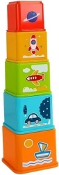 Avastage loominguline mänguasi, mis kasvab koos teie lapsega. Erineva suurusega kandiliste plasttasside komplekt autode, laevade, rakettide ja lennukite piltidega arendab kujutlusvõimet ja loomulikku õppimist. Tänu põhjal olevatele numbritele saavad lapsed teha esimesi samme loendamisel ning samal ajal arendada osavust.