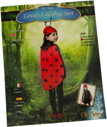 Täiuslik kaheosaline laste lepatriinukostüüm, mis koosneb punasest mustade täppidega keepist ja tundlatega mütsist. Suurepärane valik erinevatele pidudele ja teemaüritustele.