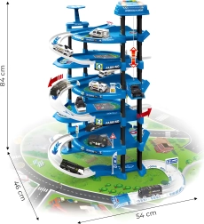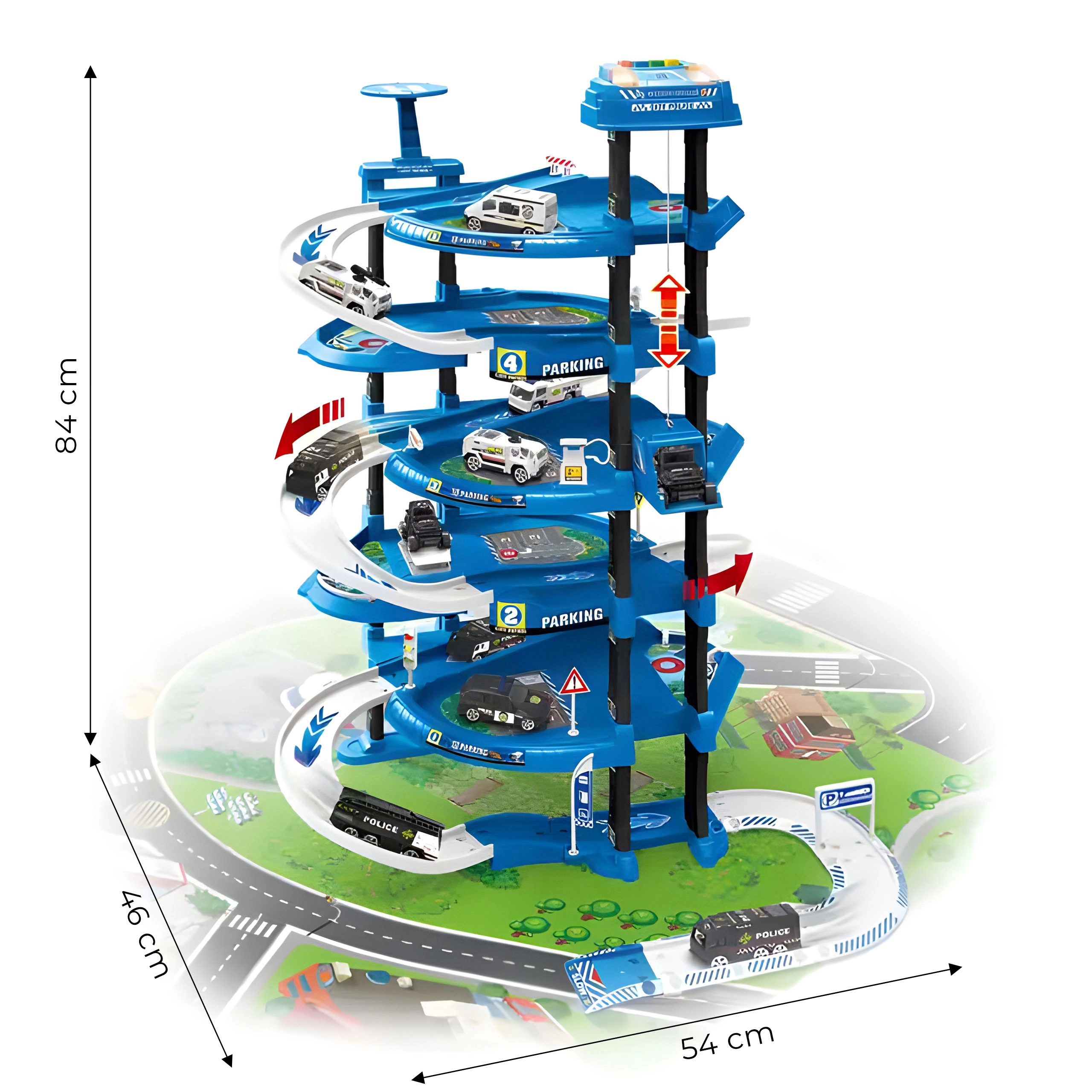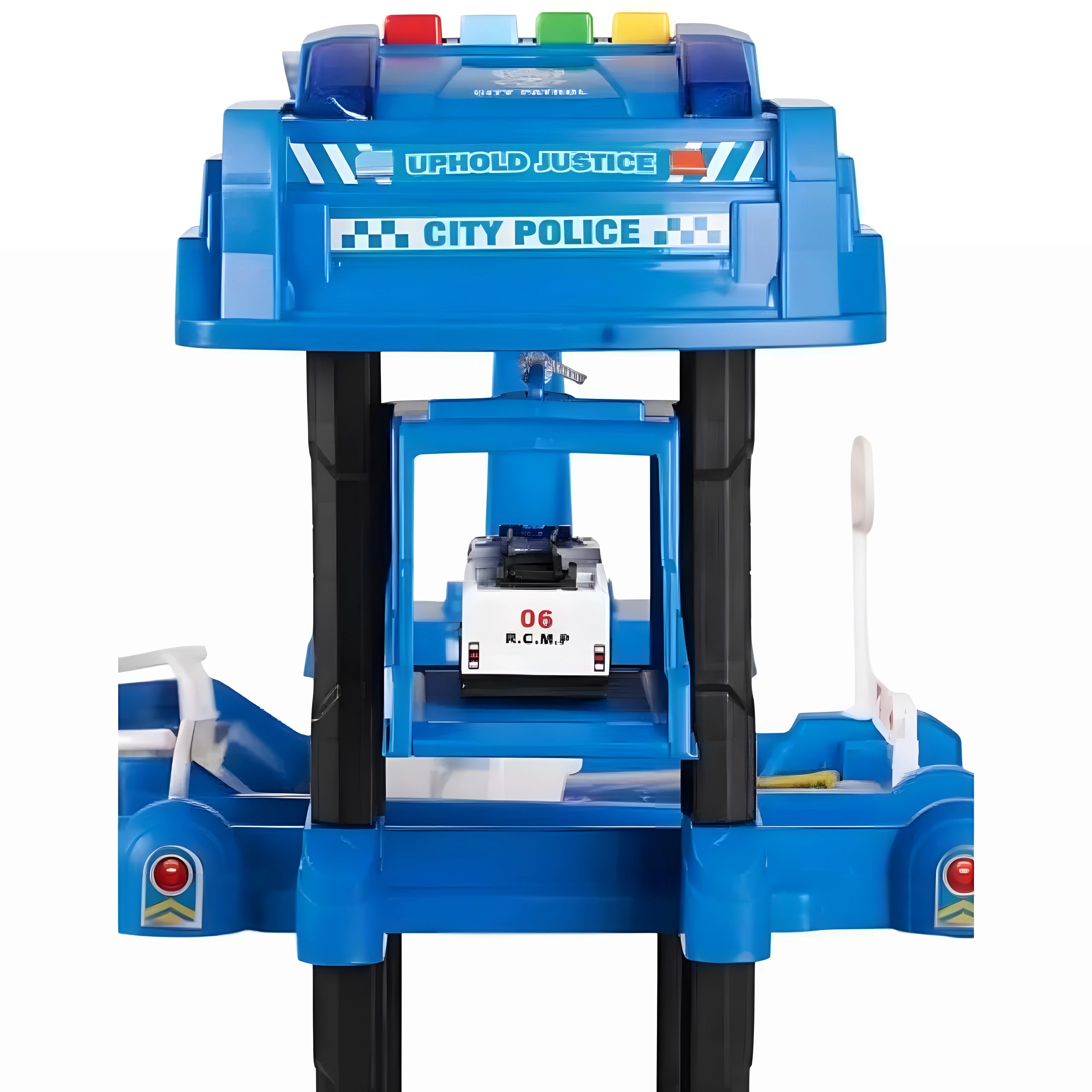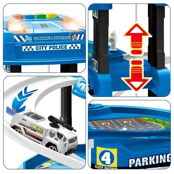 Avastage viiekorruseline parkimismaja politseijaamaga, mis rõõmustab iga väikest juhti. Tänu realistlikele detailidele, nagu rambid, tõkked, liiklusmärgid ja katusel asuv heliport, loovad lapsed oma lood ja stseenid. Interaktiivne lift viib autod tippu, kus ootab neid järgmine tegevus.