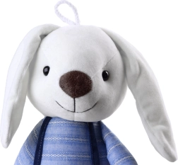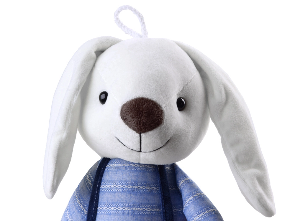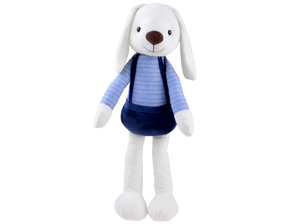 Armas 60 cm kõrgune pehme jänku on valmistatud erakordselt siidisest ja mugavast materjalist. Tal on plastist silmad, tikitud ninasaba ja sarmikas naeratus. Triibulise särgi ja traksipükstega riietus teeb temast ideaalse kaaslase mängimiseks, muinasjuttude lugemiseks ja une-eelseks kaisutamiseks.