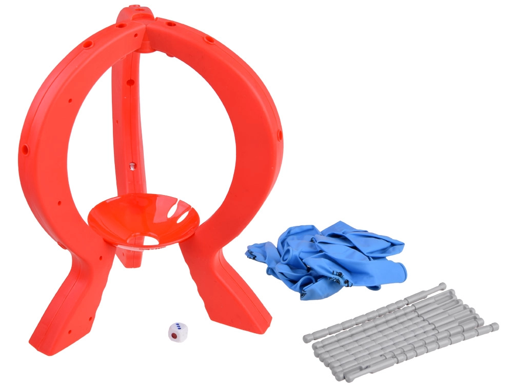 - Komplektis: raam alusega, 10 õhupalli, 9 plastist varrast, täring, juhend