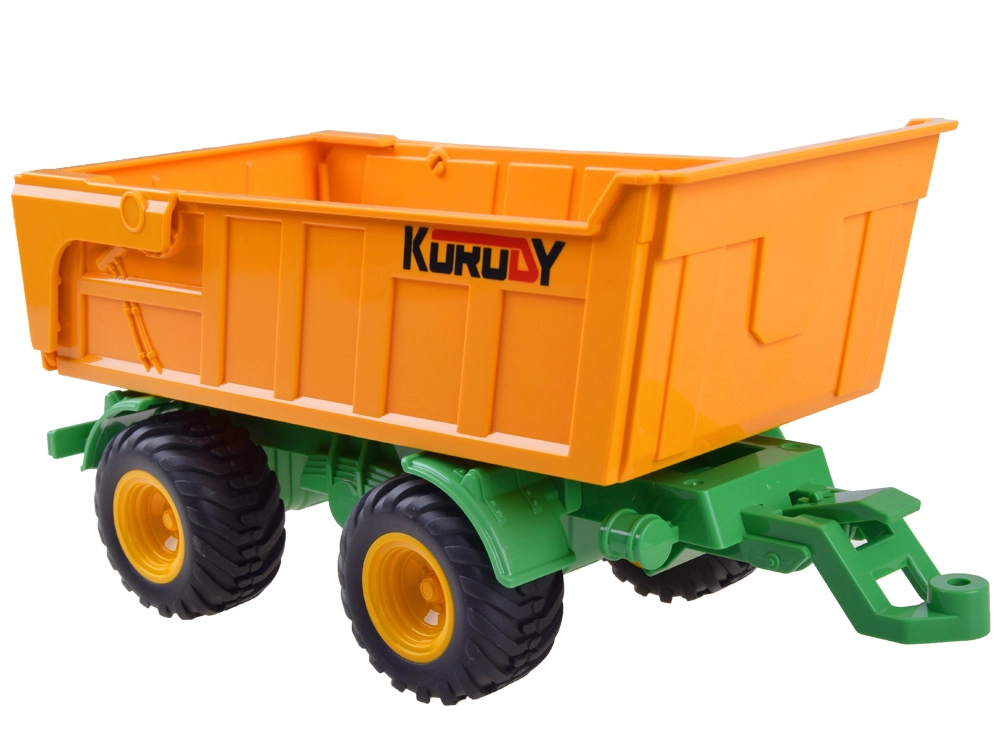 RC-traktor on ideaalne väikestele farmeritele – vastupidav ehitus, eredad tuled ja usaldusväärne 2,4 GHz juhtimine tagavad sujuva sõidu ilma häireteta. Kallutatava järelkäru avatava tagaluugiga abil on lasti lihtne peale ja maha laadida ning kui käru pole vaja, saab selle lihtsalt eemaldada.