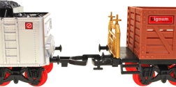Must lokomotiiv punaste ratastega süttib esitulega, teeb häält ja pärast vee lisamist väljub korstnast tõeline suits – elamus nagu vanal raudteel.