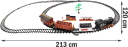 See hoolikalt valmistatud elektriline rongirada rõõmustab nii väikseid kui suuri raudteehuvilisi. Aurulokomotiiv põleb eesmine tuledega, tekitab päris rongi helisid ning pärast vee lisamist loob korstnasuitsu efekti. Kaugjuhtimisega on kiirus ja suund alati sinu kontrolli all.