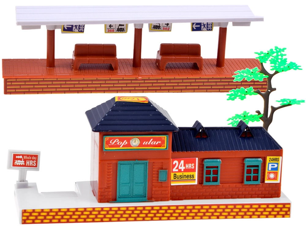 Koosta 213 × 120 cm rada 22 rööpaosast, lisa jaam, ootesaal ja puud ning loo oma raudteestseen.