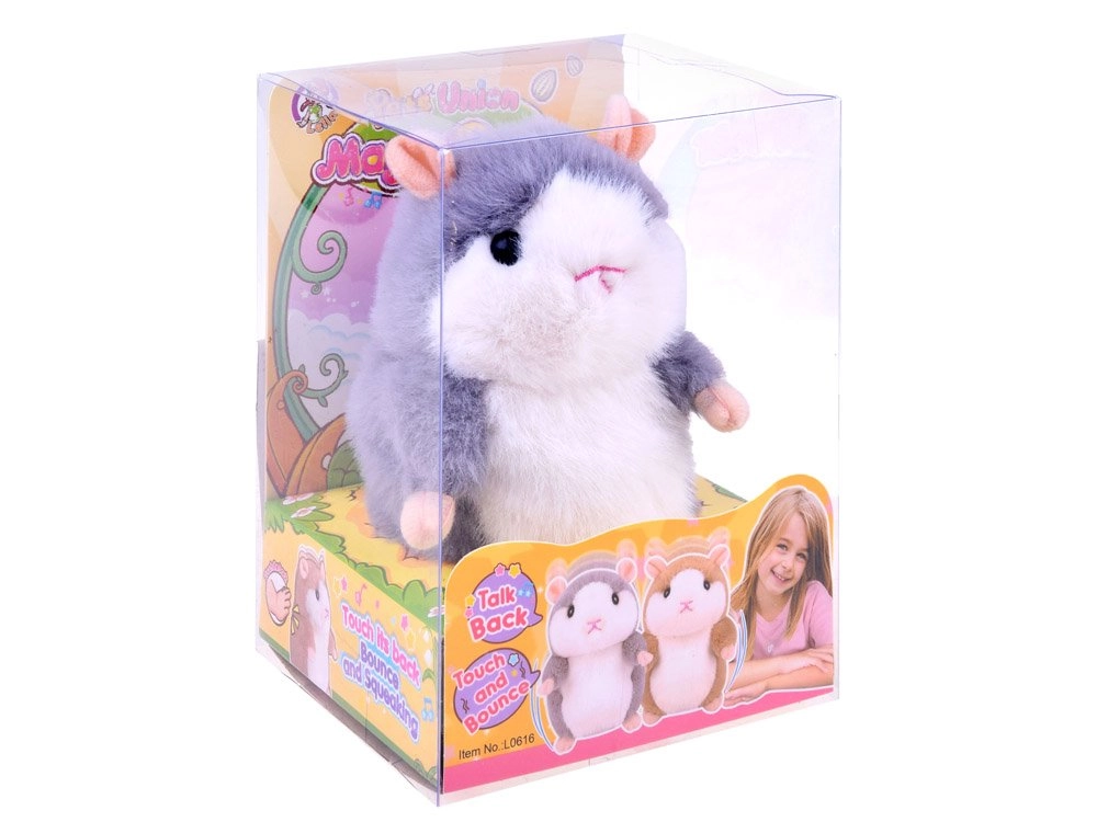 See plüüshamster kuulab, mida talle räägite, ja kordab kõik kohe lõbusa häälega. Esitamise ajal kiigutab ta terve kehakesega, pakkudes rõõmu nii lastele kui ka täiskasvanutele. Tänu meeldivale, pehmele materjalile sobib ta ideaalselt kaisutamiseks.