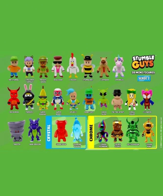 Figurid sobivad hästi lastetuppa, töölauda kaunistama või iga entusiasti kollektsiooni. Kombineeri teiste tegelastega ja loo omaenda väljapanek Stumble Guysi maailmast.