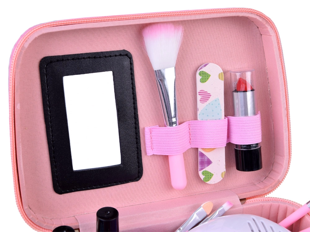 See armas kohver on täidetud kvaliteetsete kosmeetikatoodetega kaunite küünte ja meigi loomiseks. Sisseehitatud peegli ja kosmeetikahoidikutega kohver sobib suurepäraselt igale väikesele stilistile. Tänu praktilisele käepidemele saate kohvri hõlpsasti kaasa võtta kuhu iganes lähete. Komplekt sisaldab: