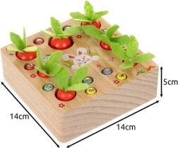 Montessori põhimõtteid järgides saavad lapsed sukelduda loova aedniku rolli ja õppida lõbusal viisil, kuidas porgandeid istutada ja korjata või mängida magnetõngega. See toode on ideaalne lapse fantaasia ja loovuse arendamiseks.