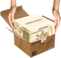 Puidust mänguasi KRUZZEL 2-ühes toob õppimise ja mängurõõmu värvilise aiakujunduse näol. Lapsed armastavad aednikke matkida, mängides magnetiliste ussikestega ja pannes porgandeid õigete avade sisse. Mäng toetab kujude ja värvide äratundmist ning arendab meeltetaju oskusi.