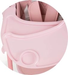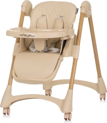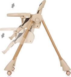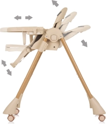 Puhast ja mugavat einestamist toetab kahekordne kandik – ülemise osa saab igal ajal eemaldada ja pesta, samal ajal kui alumine kandik koos kaitsva T-pulgaga hoiab lapse kindlalt paigal. Kandikut saab liigutada edasi-tagasi 3 asendis. Neli ratast võimaldavad tooli kodus kergesti liigutada ning pärast sööki saab tooli lihtsalt kokku panna kompaktseks, säästes ruumi.
