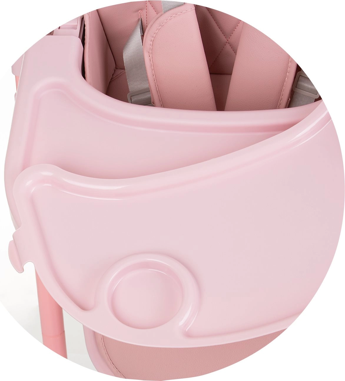 Ülemine kandik on eemaldatav kiireks puhastamiseks, alumine kandik koos T-pulgaga hoiab lapse ohutus asendis. Kandikut saab nihutada 3 asendis.