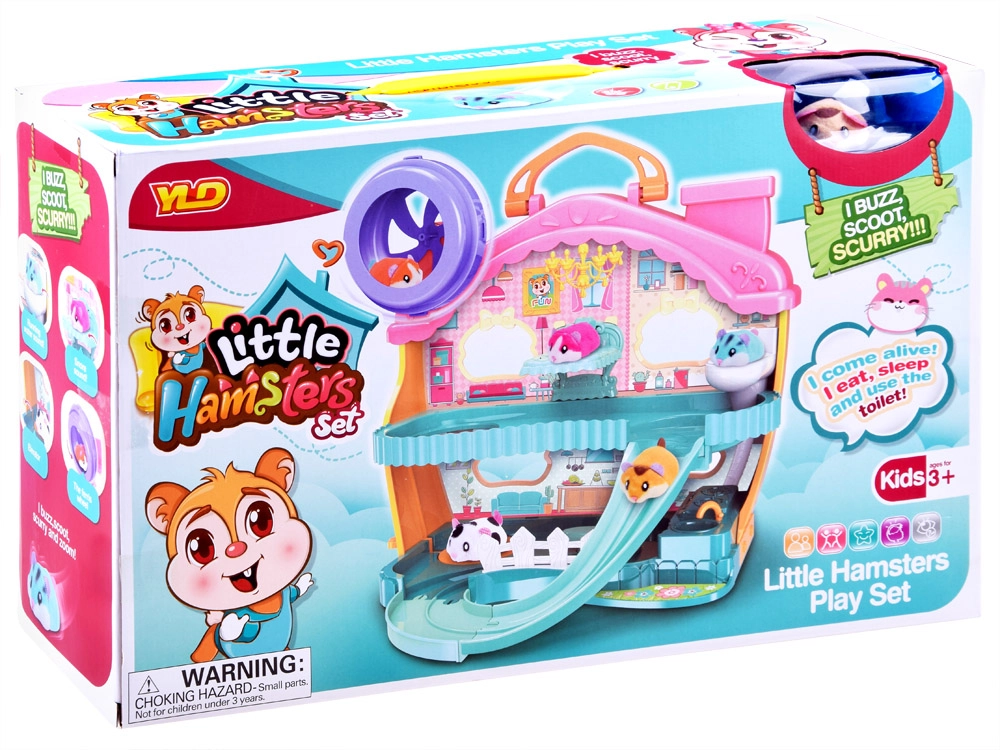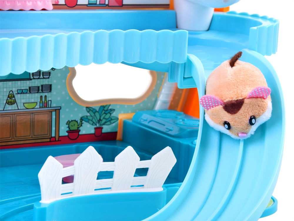 Armas komplekt interaktiivse plüüshamstri ja värvilise, lõbusid täis majakesega rõõmustab igat last. Seest leiad jooksuratta, haigutamise ja norskamise helidega voodi, tualeti loputusega, liumäe ja lifi. Hamster on puudutamisel pehme ning valmis mänguks kohe pärast lahtipakkimist.