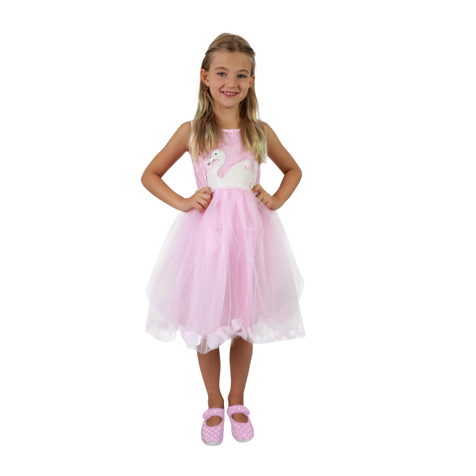 Roosa luigiprincessi kleit toob võlu igasse päeva. Õhuke tüllikiht satiinvoodri peal loob kohevuse ning paneb seeliku liikumisel kaunilt lainetama. Ülaosa luigemotiiviga mõjub õrnalt ja elegantselt, nii et teie tüdruk tunneb end tõelise printsessina.