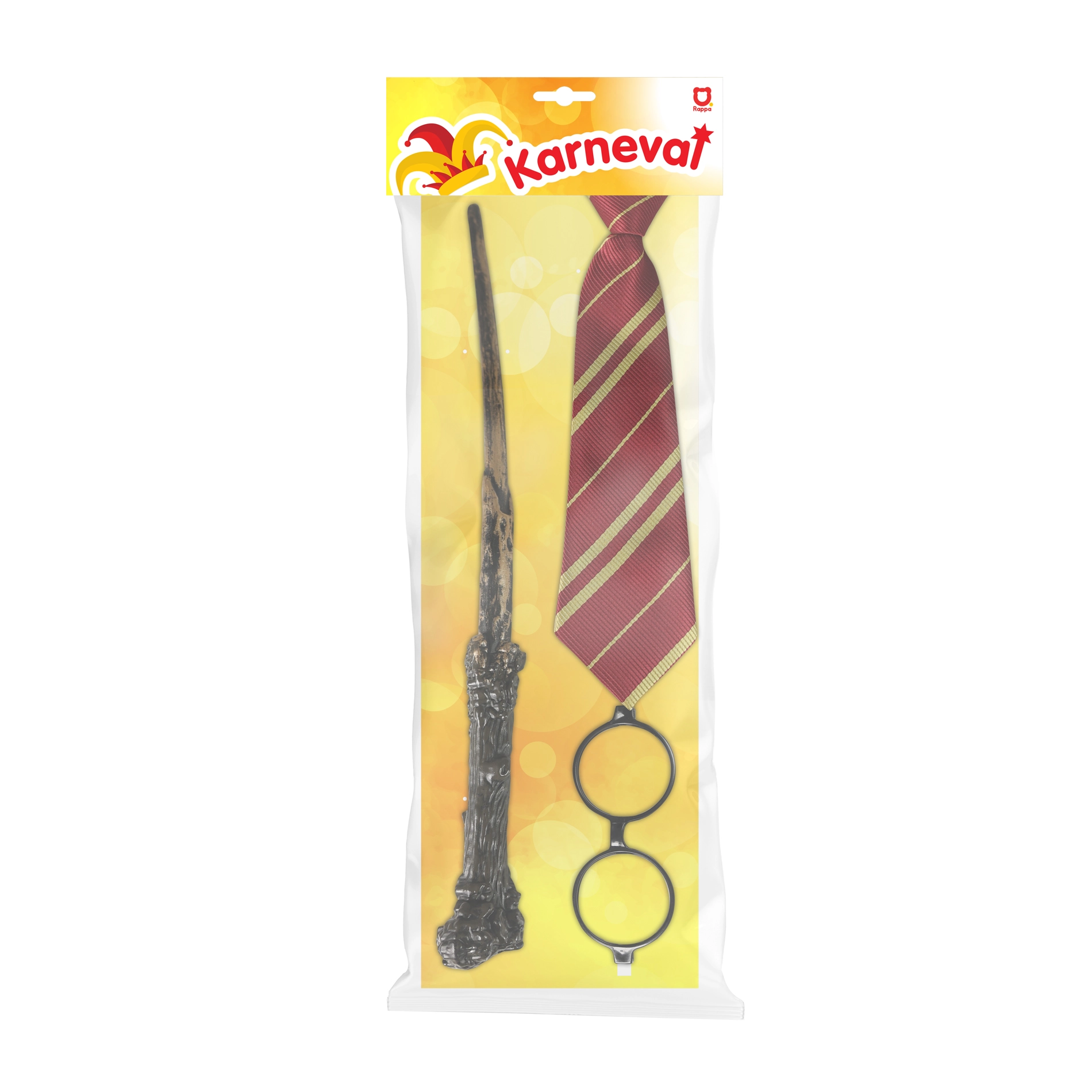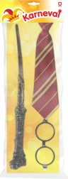 Valmistu maagiliseks seikluseks täieliku võlurikomplektiga. Kerge plastist kepp, stiilsed prillid ja silmapaistev lips aitavad luua autentse välimuse hetkega. Ideaalne nii lastele kui ka täiskasvanutele, kes soovivad oma kostüümi lihtsalt ja efektselt täiendada.