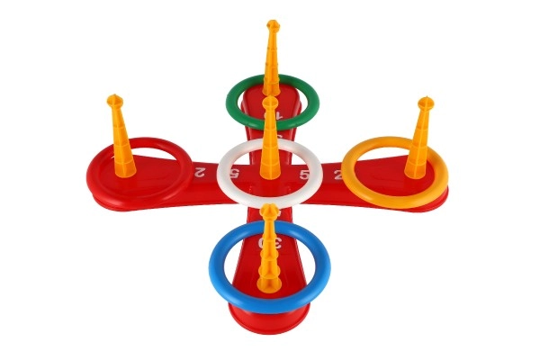 Mäng sisaldab ristkülikutega alust ja värvilisi rõngaid lõbusaks viskamiseks.