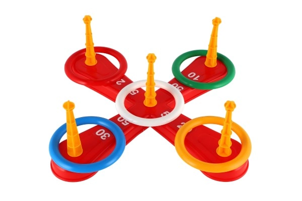 See rõngastega rist-viskemäng ühendab suurepäraselt lõbu ja õppimise. Suurepärane viis laste käe-silma koordinatsiooni arendamiseks mängimise käigus. Komplektis on risttüüpi alus viie postiga ning värvilised rõngad, mida visata postidele, et koguda punkte.