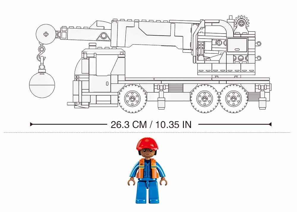 Ehita tugev lammutuspalliga autokraana ja asu vanu ehitisi maha võtma. SLUBANi komplekt pakub uuenduslikke minifiguure pöörlevate ja liikuvate kehiosadega ning täpseid detaile vastupidavast ABS-plastist. Karbis on selge juhend ja värviline pakend – suurepärane kingitus väikestele ehitajatele.