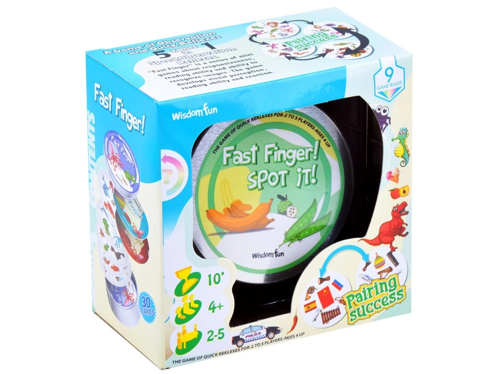 Pakendis on 30 vastupidavat kaarti ja mitu mänguviisi, mis panevad proovile sinu refleksid, detailide märkamise ja mälu. Sümbolid erinevad suuruse ja pöördenurga poolest, nii et mäng üllatab ikka ja jälle.