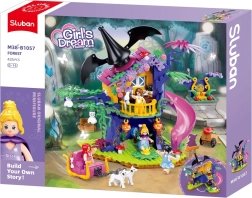 Sluban Tüdrukute Unistused Võlutud Puumaja toob teie koju lõputu lõbu ja võlu. See ehituskomplekt sisaldab 435 detaili, mida saab ühendada sarnaste komplektidega tuntud tootjatelt nagu LEGO või Cobi. Suurepärane valik kõigile väikestele nõidadele ja võluritele!