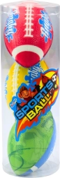 Lõbus kolmest vahust ragbipallist koosnev komplekt eri värvides turvaliseks mänguks aias, mänguväljakul ja rannas. Pehme materjal on laste vastu õrn ning pakub kerget ja ohutut käsitsemist, erksaid värve parema nähtavuse jaoks ja universaalset kasutust aktiivseks liikumiseks.