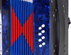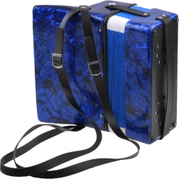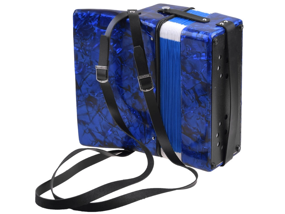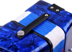 Läikiv sinine korpus marmoriefektiga, klahvid ja bassinupud. Akordion kõlab puhtalt ja meeldivalt – ideaalne esimesteks muusikakogemusteks.