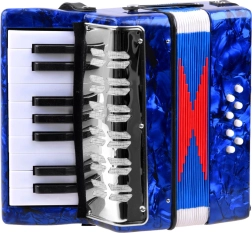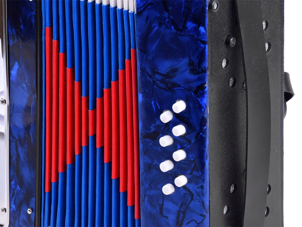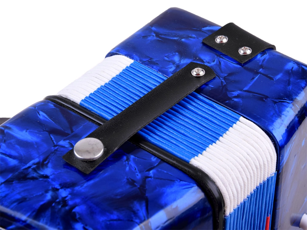 Realistlik välimus ja funktsioonid – laste akordion näeb välja ja toimib nagu päris instrument: heli tekib lõõtsa lahti- ja kokkusurumisel, olemas on klahvid ja bassinupud. Tänu kvaliteetsele viimistlusele ja läikivale sinisele pinnale on see pilkupüüdev ja vastupidav.