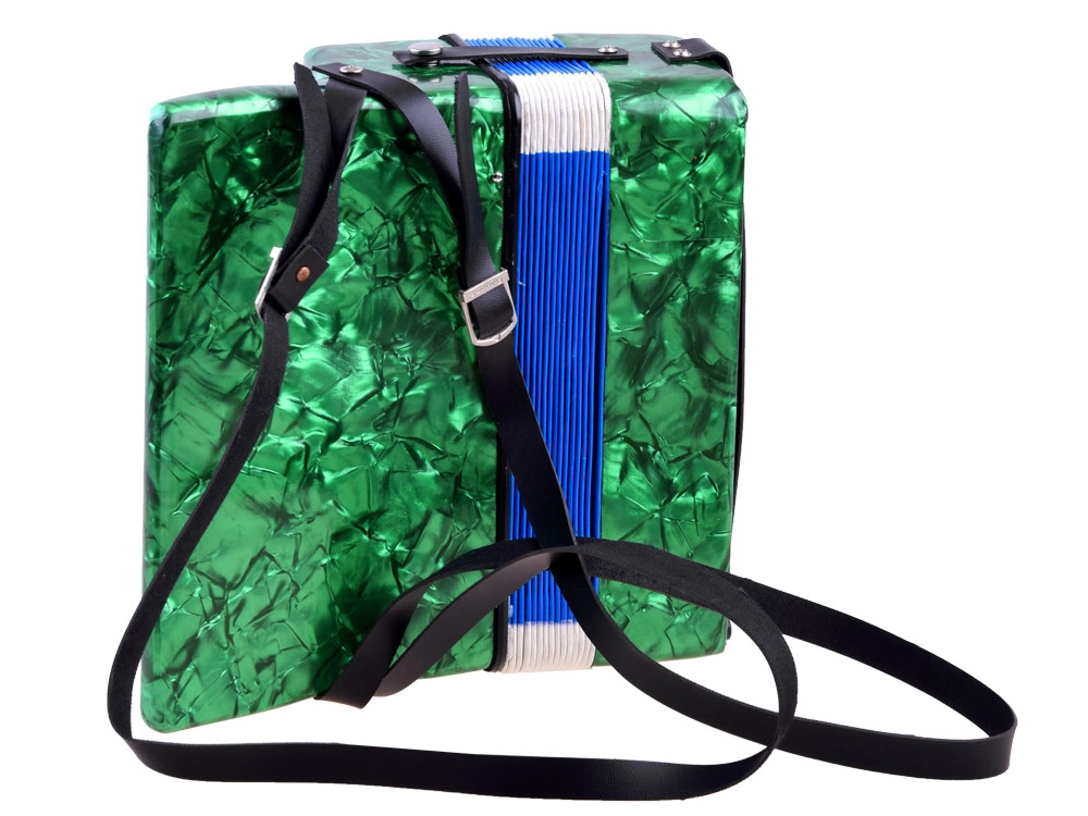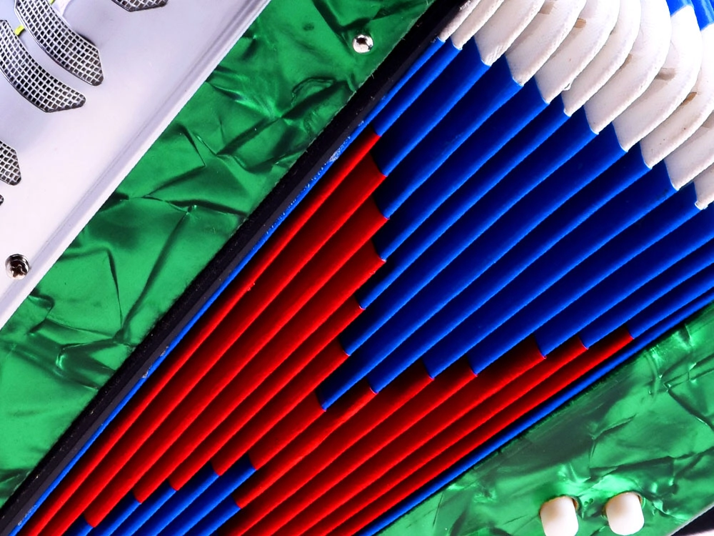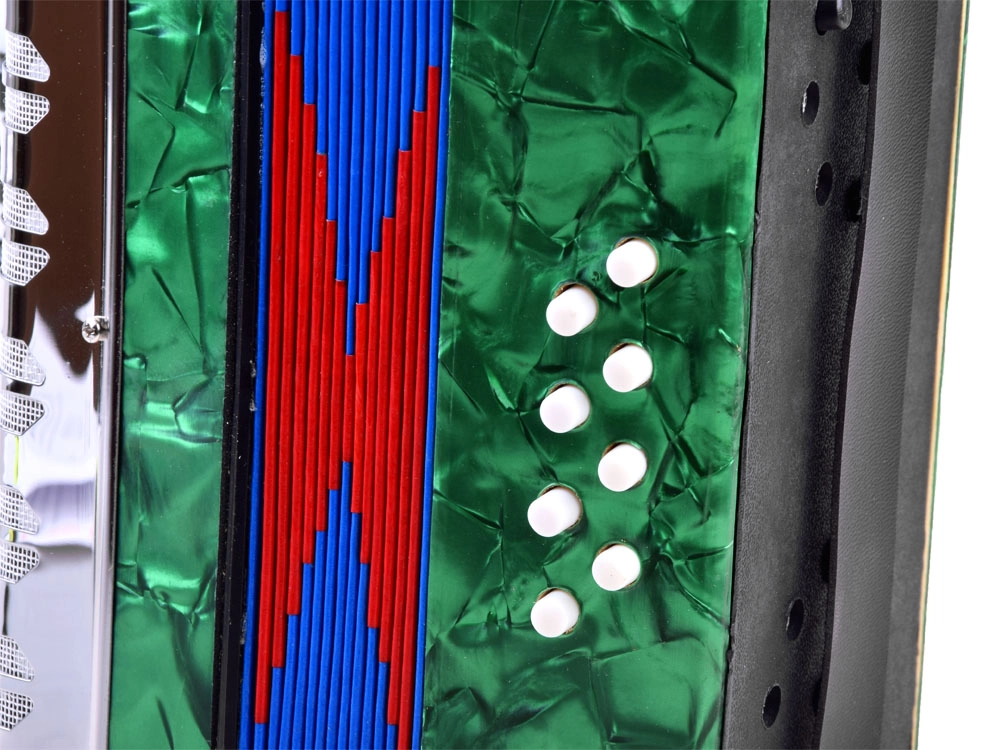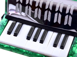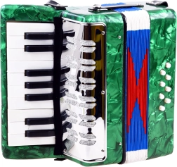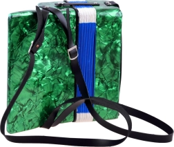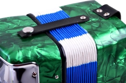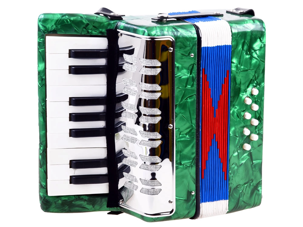 Avasta muusika rõõm selle rohelise viimistlusega suure laste akordioniga. See näeb välja nagu päris pill, arendab peenmotoorikat, muusikalist kuulmist ja õpetab toonide eristamist. Tänu klahvidele ja bassinuppudele, mugavale rihmale ning lõõtsa lukustusklambrile on mängimine lihtne ja ohutu – ideaalne väikestele algajatele muusikutele.