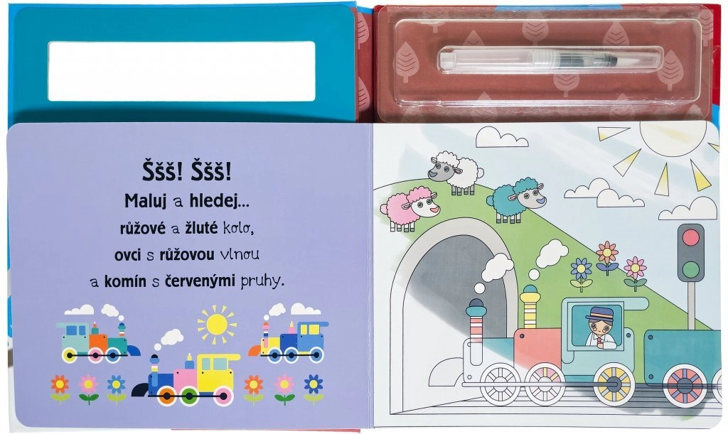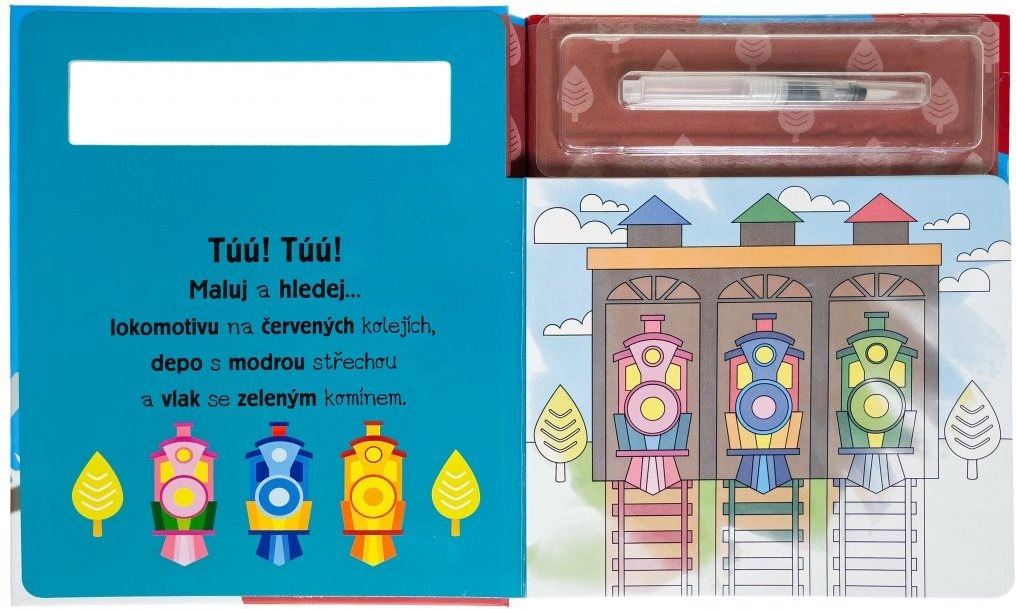Nautige segaduseta maalimist korduvkasutatavate värvimislehtedega. Vaja on vaid vett, pintslit ja teie laps avastab peidetud pildid rongidest ja võimsatest masinatest.