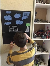 - 1× tahvlikile rull, kriidid, värviline karp