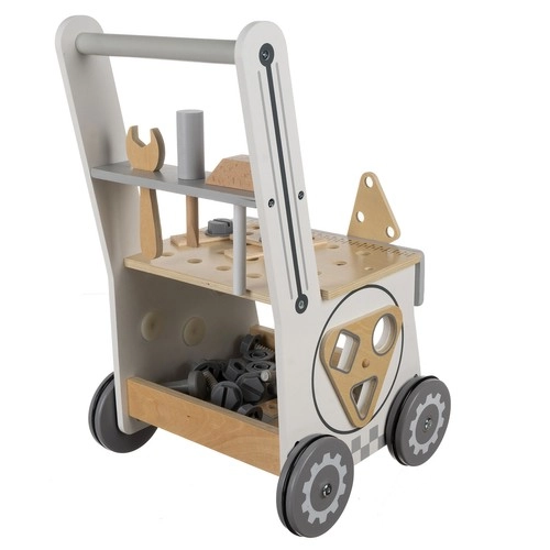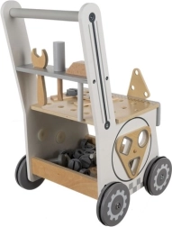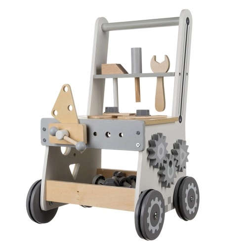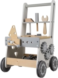 Puidust 3‑ühes KRUZZELi töökojawalker ühendab lõbu ja õppimise. Lapsed saavad mängida väikest meistrimeest päris puidust tööriistadega, sortida kujundeid ja avastada hammasrataste tööpõhimõtteid. MDF‑ist ja puidust konstruktsioon koos kummiratastega tagab stabiilsuse, pika kasutusea ja vaikse liikumise.