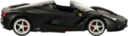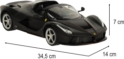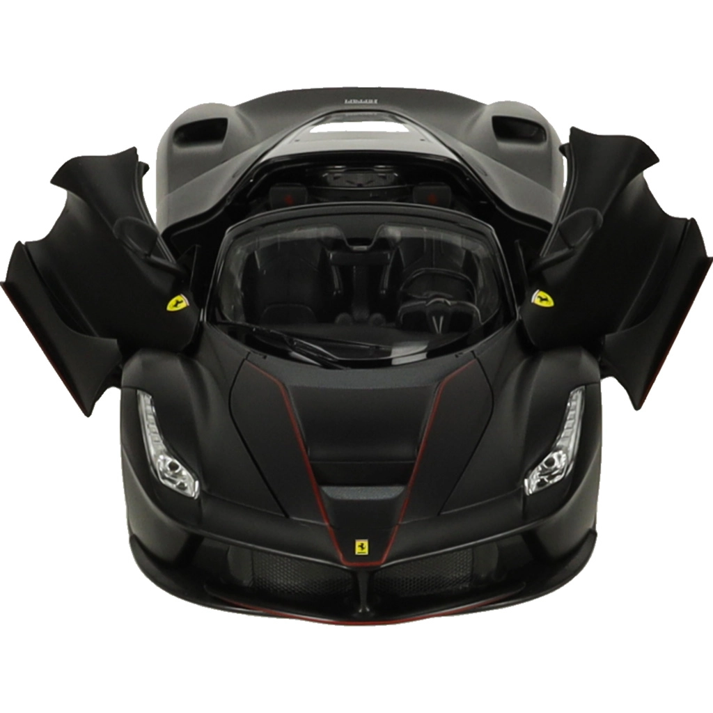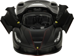 See truu FERRARI LaFerrari Aperta mudel rõõmustab täpsete keredetailide, sportlike velgede ja autentsete proportsioonidega. Must viimistlus koos margi embleemidega rõhutab supersportauto eksklusiivset ilmet.