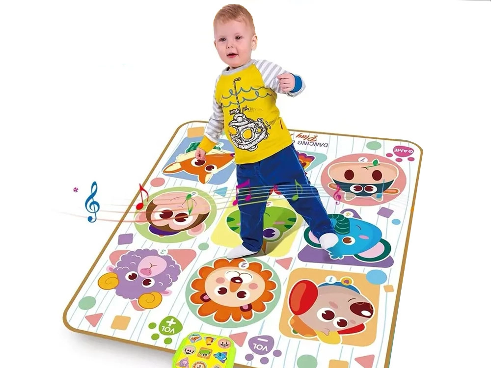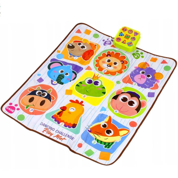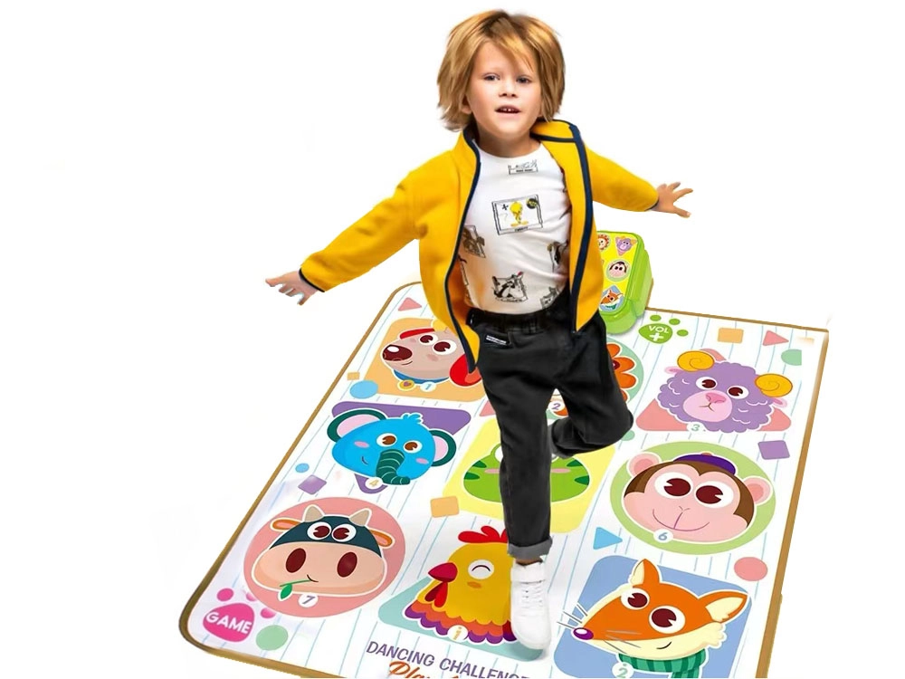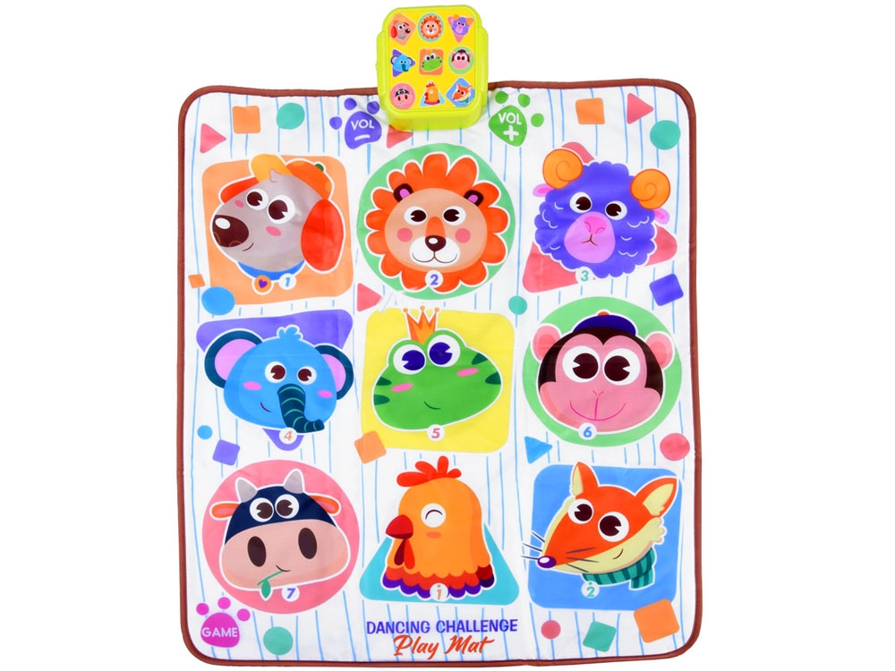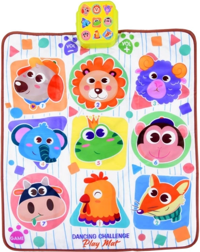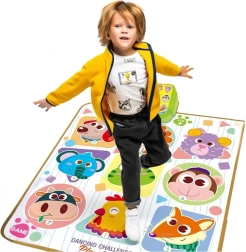 Teie lapsel on selle interaktiivse tantsumatiga palju lõbu. See pakub mitut mängutaset värviliste loomamustritega. Iga mängija peab asetama käed või jalad erinevate loomadega paneelil süttivatele elementidele.