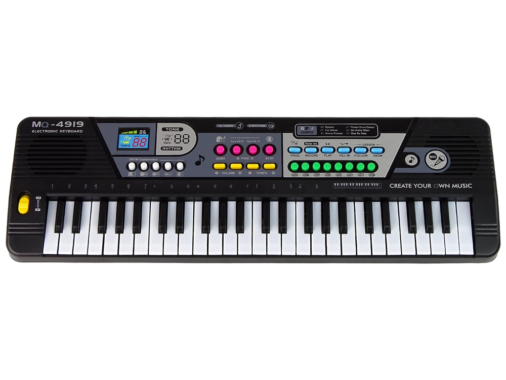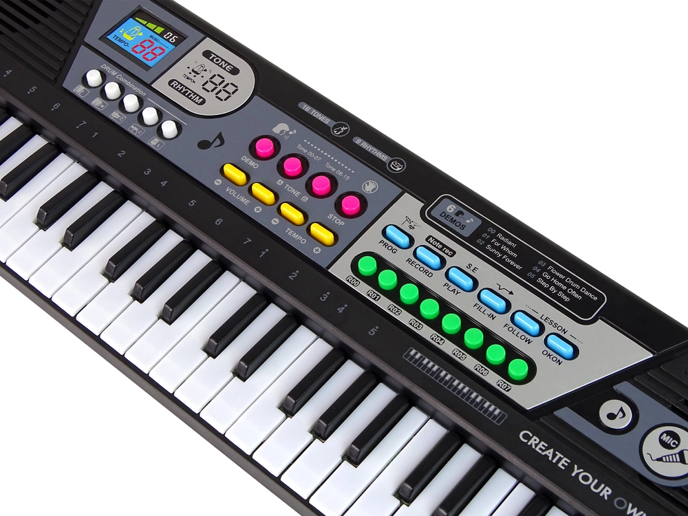 Arendage oma lapse muusikalist annet selle kompaktse klaviatuuriga, millel on 49 klahvi ja mikrofon. Lihtne kasutada, 6 demolugu, 16 tämbrit, 8 rütmi, löökpillide helid, 2 õpperežiimi, salvestamine, heli- ja tempokontroll. Kerge konstruktsioon ja sisend lemmiklugude esitamiseks tagavad tundidepikkuse lõbu.