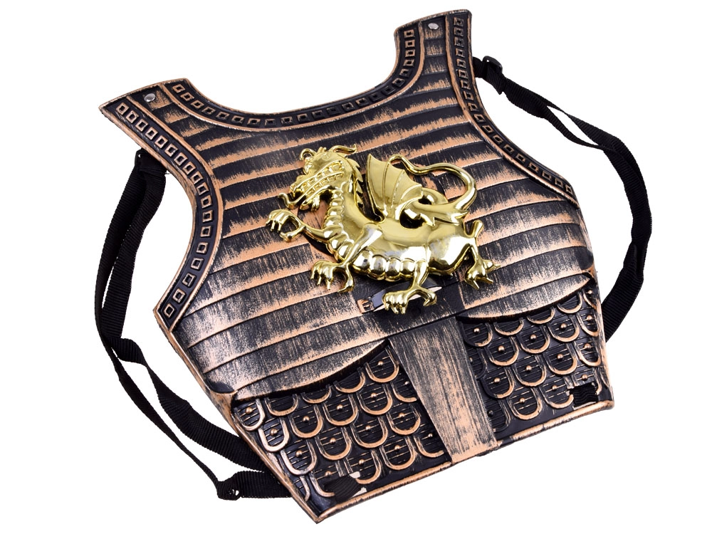 See täielik rüütlivarustus sobib suurepäraselt kodusteks seiklusteks, karnevaliks ja lastepidudeks. Reguleeritavate rihmadega soomus silmapaistva kulddraakoniga, vibu kahe turvalise iminapp-noolega rõõmustab väikseid laskureid ning kerge mõõk täiendab iga kangelasretke.