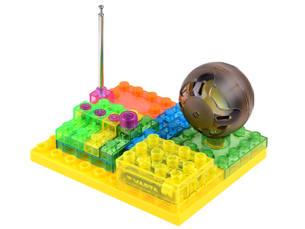 Komplekt arendab loogilist mõtlemist, peenmotoorikat ja loovust. Tänu läbipaistvatele ja värvilistele osadele mõistavad lapsed hõlpsasti, kuidas komponendid elektriahelas koos töötavad. Komplekti kuuluvad kõlar, metallist teleskoopantenn, plastist alus ja illustreeritud juhend. Toiteks on vajalikud 3× AA 1,5 V patareid (ei kuulu komplekti).