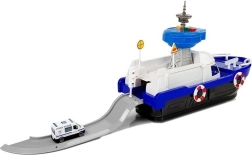 Pakkuge lastele tunde loovat mängurõõmu selle sinivalge politsei transpordilaevaga. Komplektis on politseiauto, paat ja skuuter, toimiv laadimisramp lihtsaks pealelaadimiseks ning valgus- ja heliefektid. Avatav tekiosa ja salajased panipaigad teki all toetavad fantaasiat ja realistlikku mängu, samal ajal kui kaasasolevad liiklusmärgid aitavad õppida esimesi liiklusreegleid.