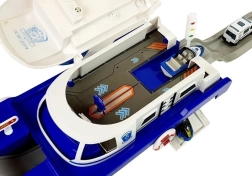 See vastupidav ratastel politseilaev pakub mitmeid interaktiivseid elemente: avatav ülemine tekk, tagumine pealeajamisramp sõidukitele ja panipaik teki all. Juhtimistorn tekitab politseisignaale valguse ja heliga (AG13 patareid on kaasas). Detailne teostus päästerõngaste ja kirjete/markeeringutega muudab mängu realistlikuks ja kaasahaaravaks.