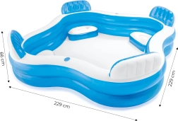 Praktilised 2 joogitopsihoidjat hoiavad joogi alati käeulatuses, tühjendusventiil aga lihtsustab kiiret vee väljalaskmist. Bassein on kergesti teisaldatav, kiiresti täispuhutav ja tänu mõõtudele 229 × 229 × 69 cm pakub rohkelt ruumi lõõgastumiseks ja mänguks.