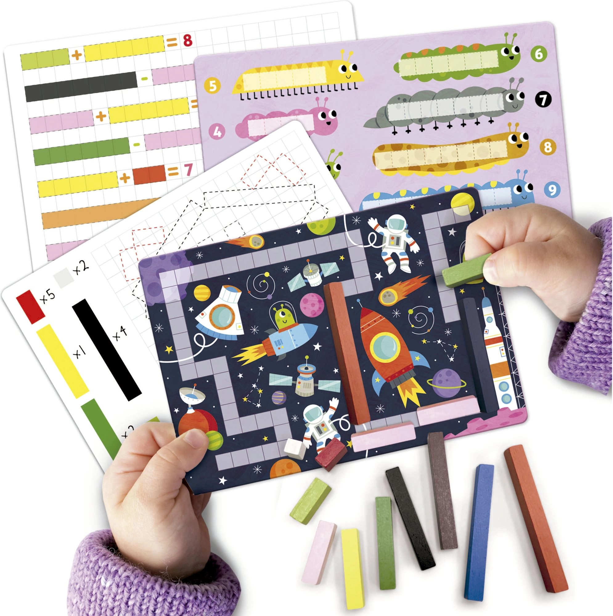 - Mänguline lähenemine – värvilised klotsid motiveerivad avastama ja iseseisvalt ülesandeid lahendama.