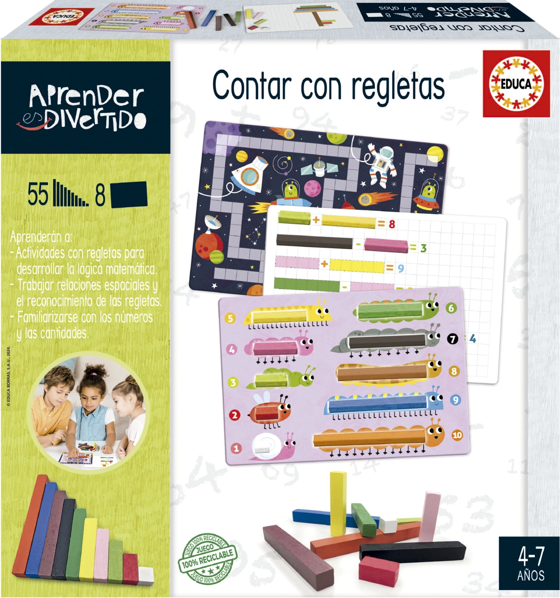 Lõbus hariv mäng EDUCA aitab lastel mängulisel viisil arendada matemaatilisi oskusi, mõistmist numbrite ja proportsioonide osas ning toetab nende loogilist mõtlemist ja enesekindlust. Tänu kahepoolsetele tegevustahvlitele ja värvikirevatele klotsidele muutub õppimine tõeliseks lõbuks.