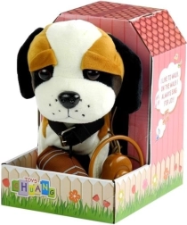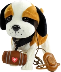 Interaktiivne pruun-valge bernhardin rihma otsas on valmistatud pehmest ja keskkonnasõbralikust materjalist, mis on meeldiv puudutusele. Tal on suured tumedad silmad, püstine saba ja silmapaistev nina. Mänguasjal on pikk rihm koos lülitiga, tänu millele saab laps oma lemmikut lihtsalt juhtida. Koer tantsib ja laulab, mis lisab mängule lõbu ja realistlikkust.