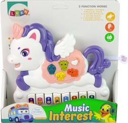 Interaktiivne klaver Ükssarvik on hoolikalt valmistatud kvaliteetsetest materjalidest ning pakub mitmesuguseid funktsioone, mis köidavad iga last. Kauni ükssarviku disain violetse lakkega ja helenduvate elementidega tõmbab tähelepanu ja innustab avastama helide maailma.