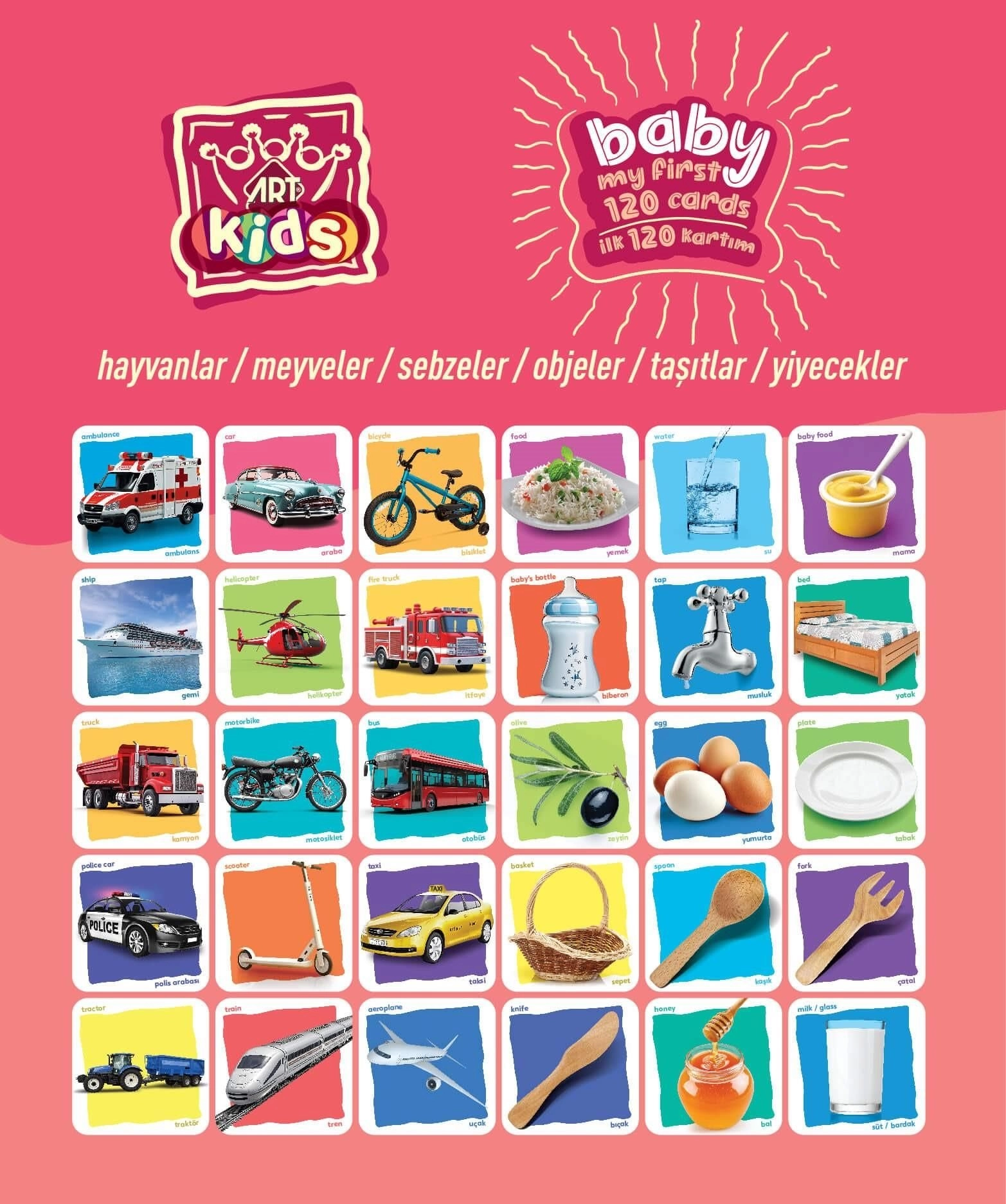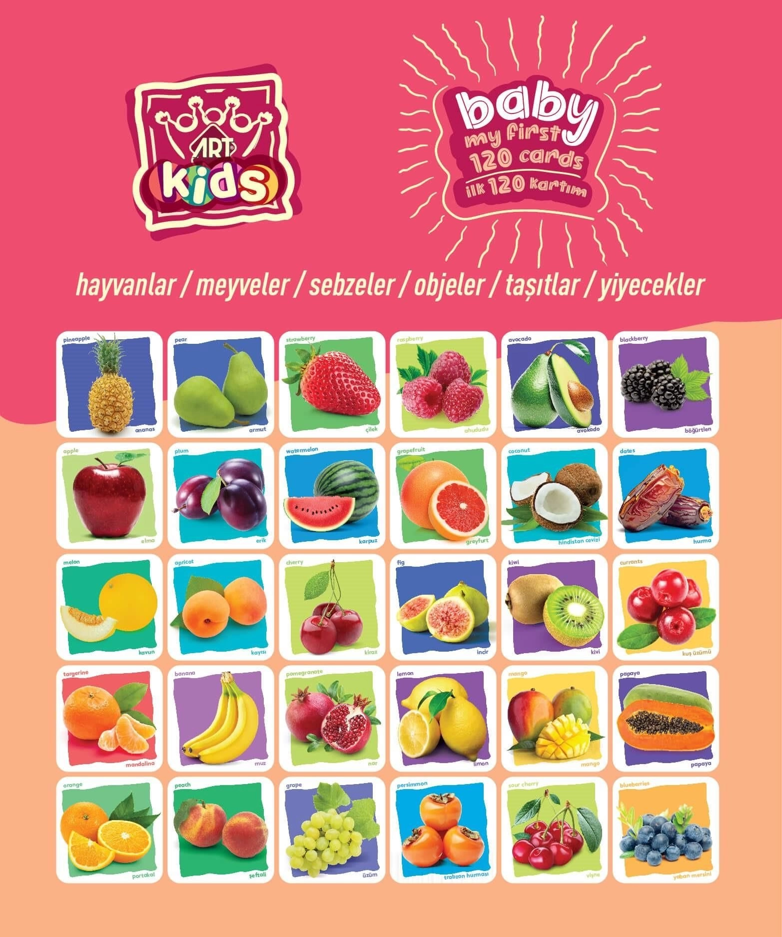 Art Kids Baby sari on suurepärane vahend laste kognitiivsete oskuste ja peenmotoorika arendamiseks. See sisaldab 120 kaarti mitmekesiste teemadega väikesele õppijale.