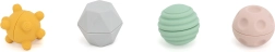 Kerged, tekstuuriga mänguasjad eri pindade ja vormidega stimuleerivad kompimist, masseerivad peopesi ja sõrmi ning tugevdavad haaret. Sobivad peenmotoorika arendamiseks ja esimeseks käe-silma koordineerimise treeninguks.