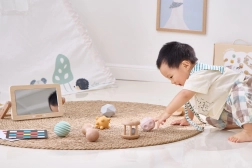 Vastupidav peegel puidust raamiga toetab “tummy time’i”, soodustab pea tõstmist, tugevdab kaela ning pakub esimest kokkupuudet oma peegeldusega. Suurepärane eneseteadvuse ja sotsiaalsete oskuste arendamiseks.