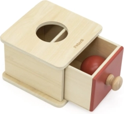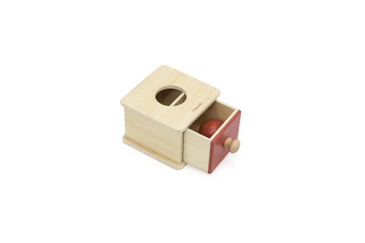 Puidust kast sahtli ja palliga õpetab lapsele, et esemed eksisteerivad ka siis, kui neid ei näe. Toetab keskendumist, kannatlikkust ja esimesi loogilisi seoseid esemete sisestamisel ja avastamisel.